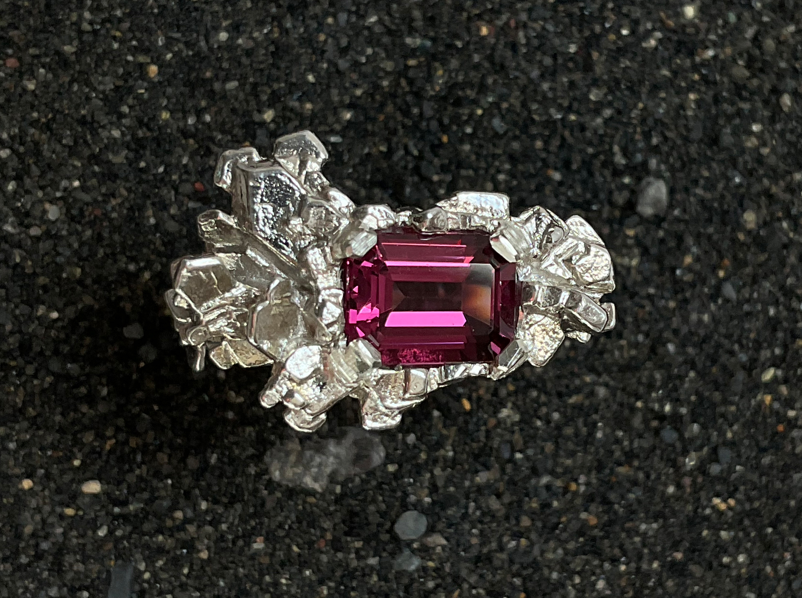 Außerdem ist der Edelstein schon immer ein zentrales Element der Schmuckgestaltung gewesen. Allerdings war es mein Wunsch ein Schmuckstück zu entwerfen, das das Thema Edelstein auf eine andere Art und Weise umsetzt. Vielleicht so, wie man es bis jetzt noch nicht gesehen hat, aber trotz allem sollte es tragbar und alltagstauglich sein.