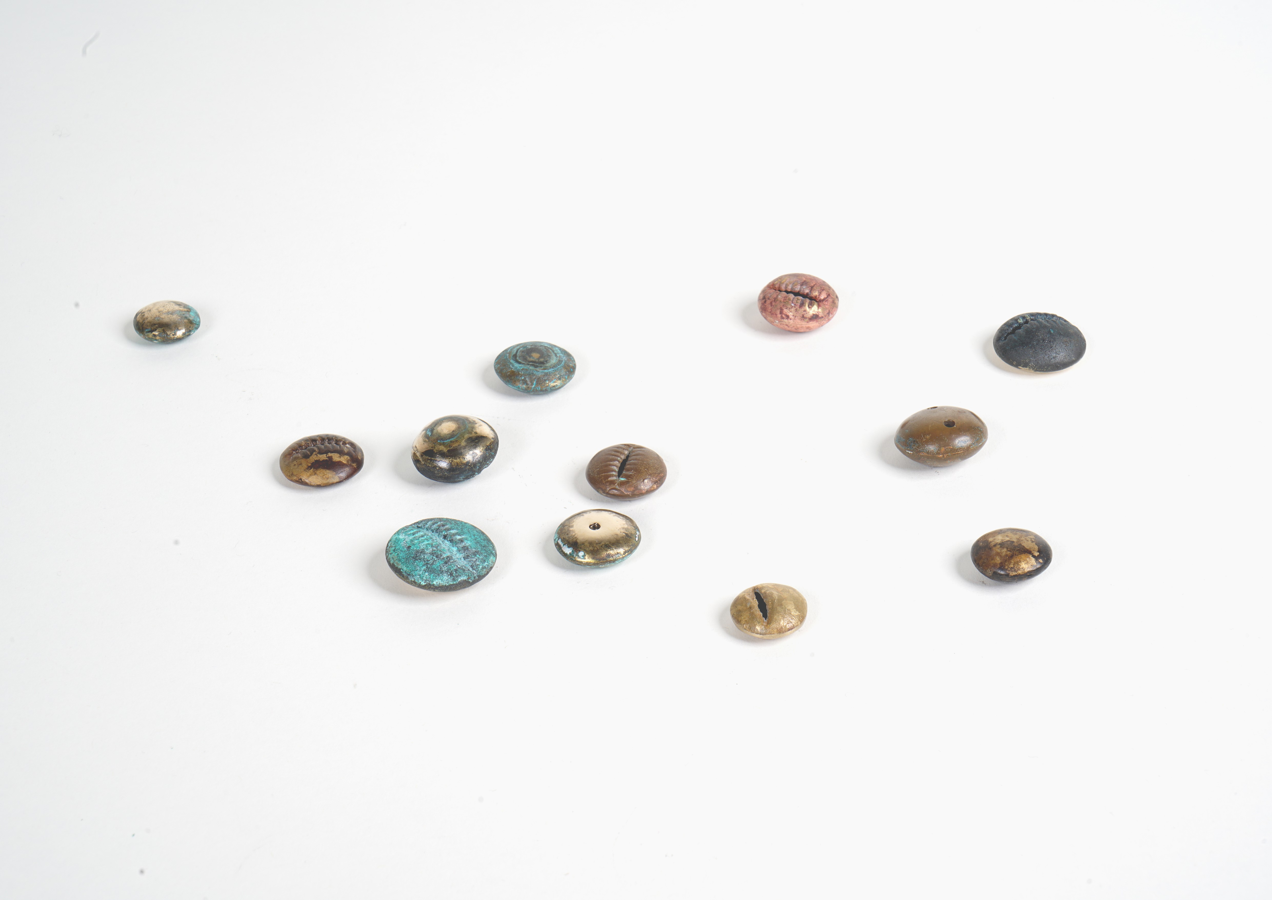 Full moon brought bigger tide, and tides brought shells to the shore, those shells were the original money. Thousands of years later, the coins are still golden and round, do they remind you of the full moon? With these objects, whose forms stray between the moon, coins and shells, I try to trace the potential connection between original jewellery, wealth and the operation of the earth and the universe.