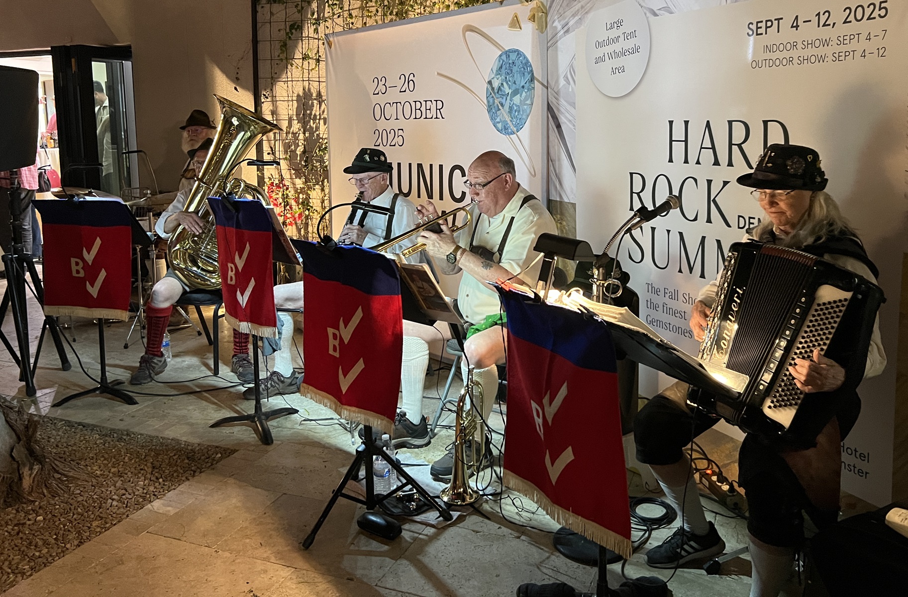 The joint evening of the Munich Show and the Hardrock Summit was a complete success - our thanks go to everyone who attended this Bavarian Night! The evening was filled with good cheer, Bavarian food and beer, but most of all great music from a German band from Tucson. Our wheel of fortune was very gracious and produced a lot of lucky winners. The opportunity to network with mineral enthusiasts from all over the world made the evening a real highlight.