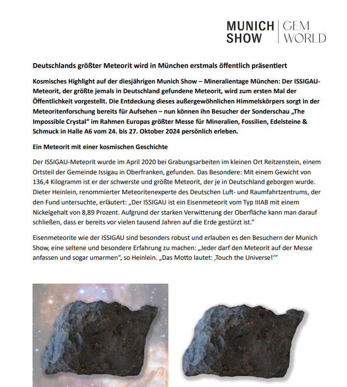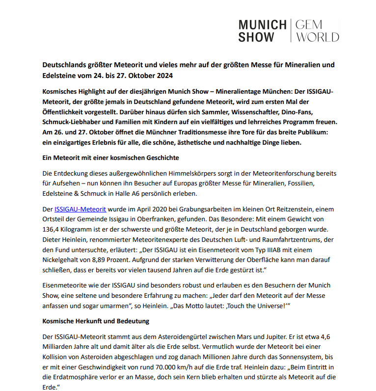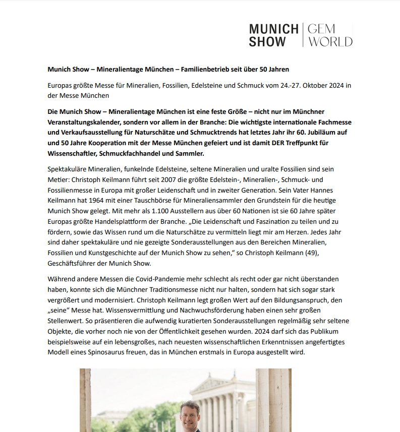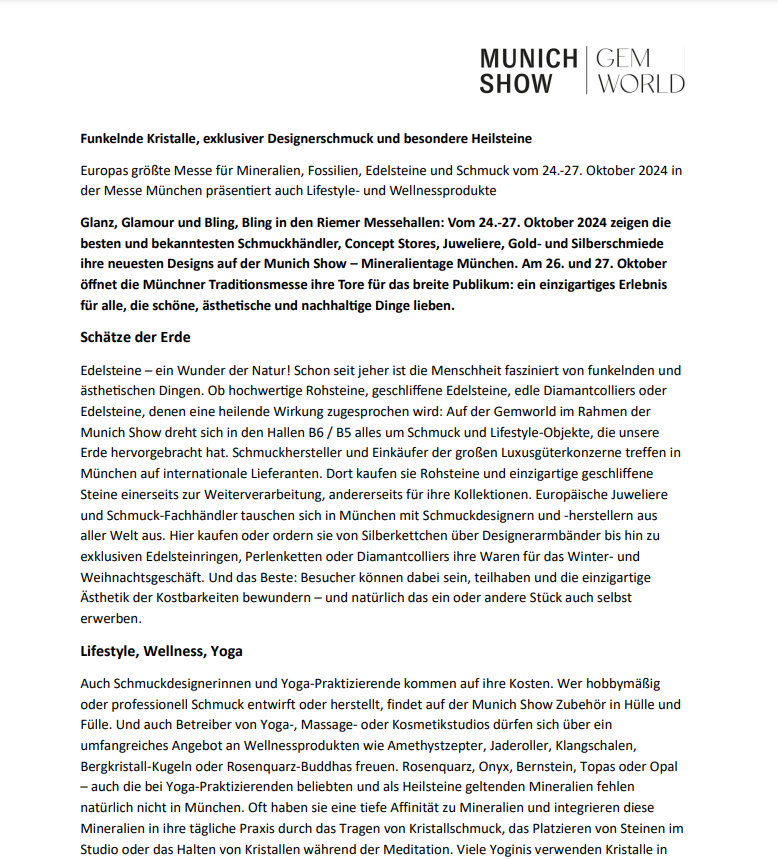 Here you will find press releases from the Munich Show and Gemworld Munich.